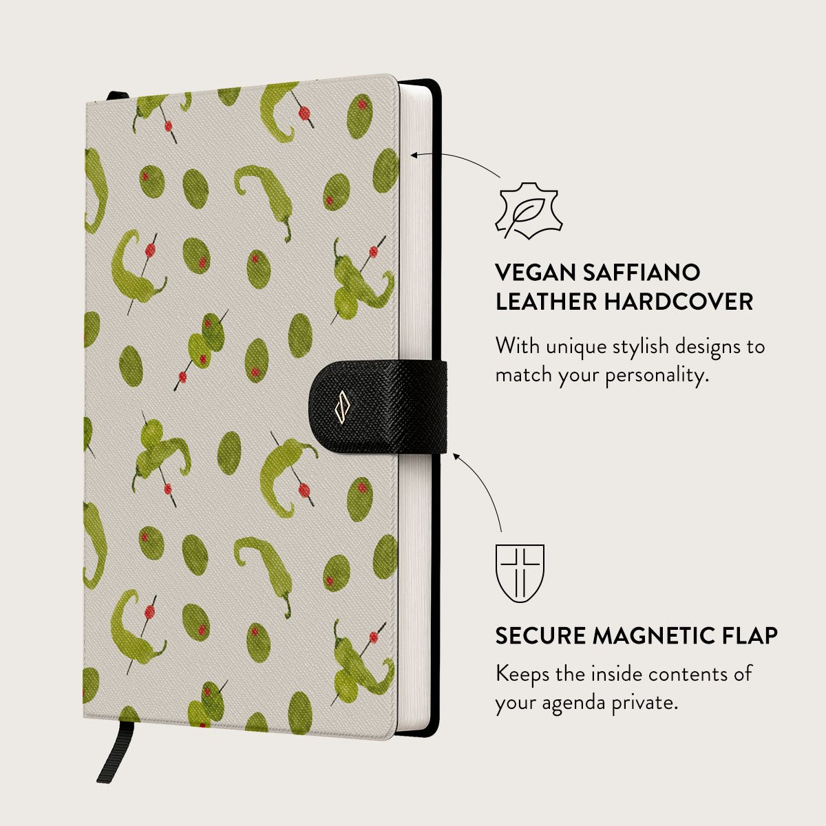 Superior flat-lay binding that keeps the notebook laying wide open. suitable for one-handed writing. No more struggling to use the beginning or end papers of the agenda.
