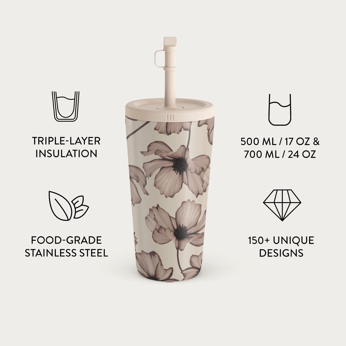 Choose from over 150 unique BURGA designs. each paired with one of six vibrant flap or straw lid colors. Our team matches the lid to the design for a seamless and stylish look.