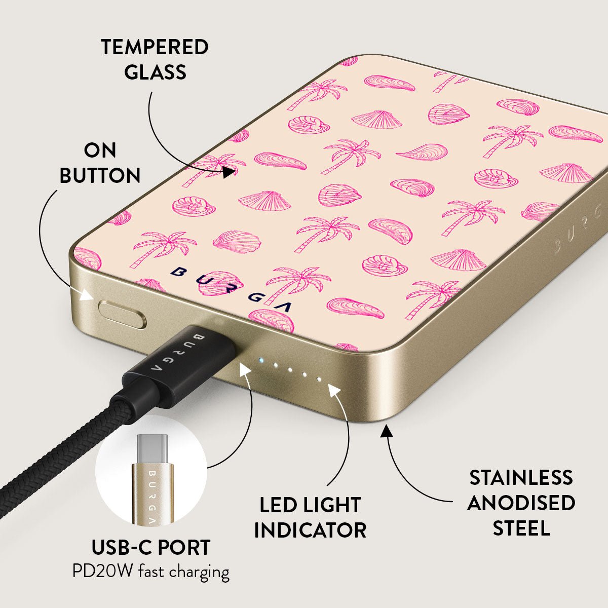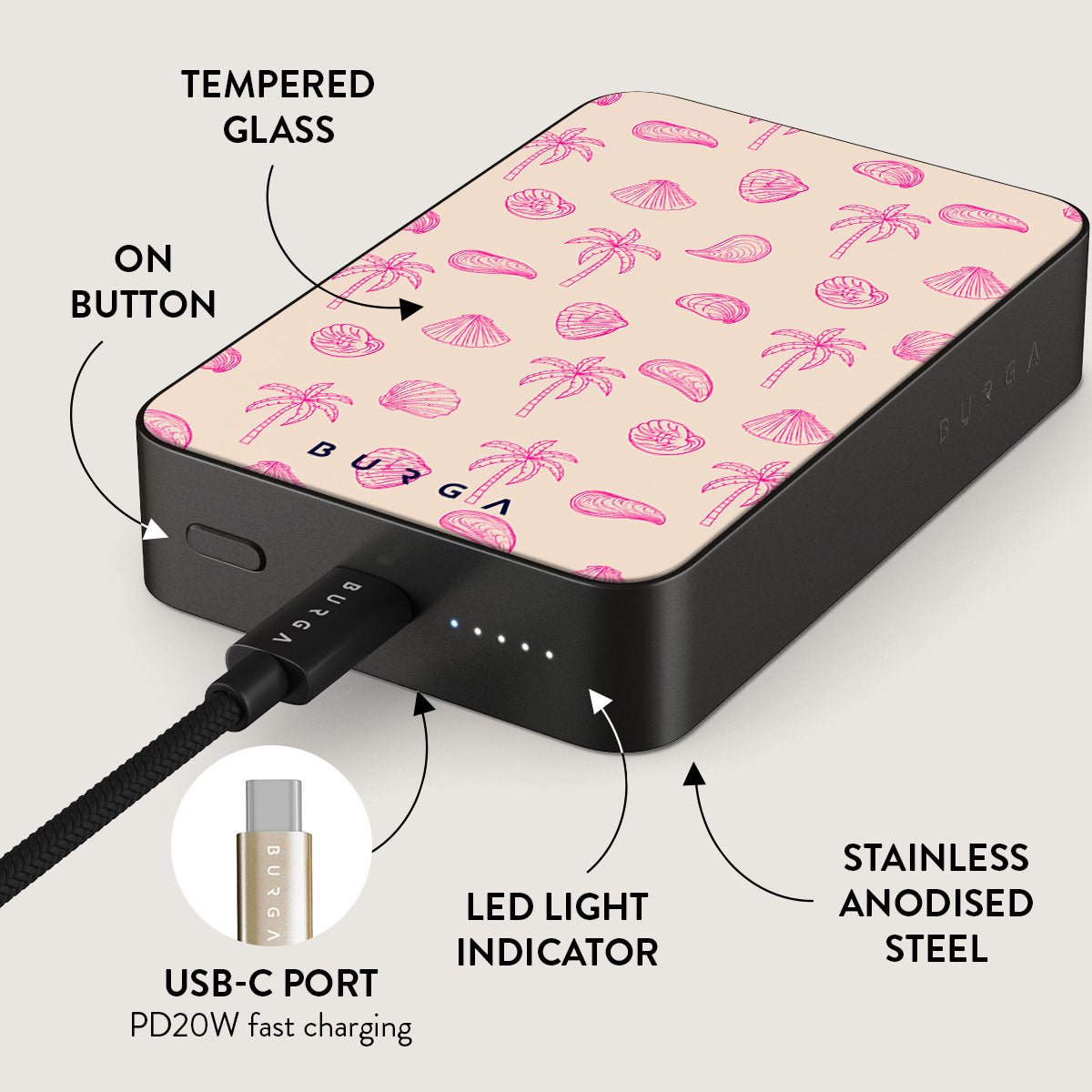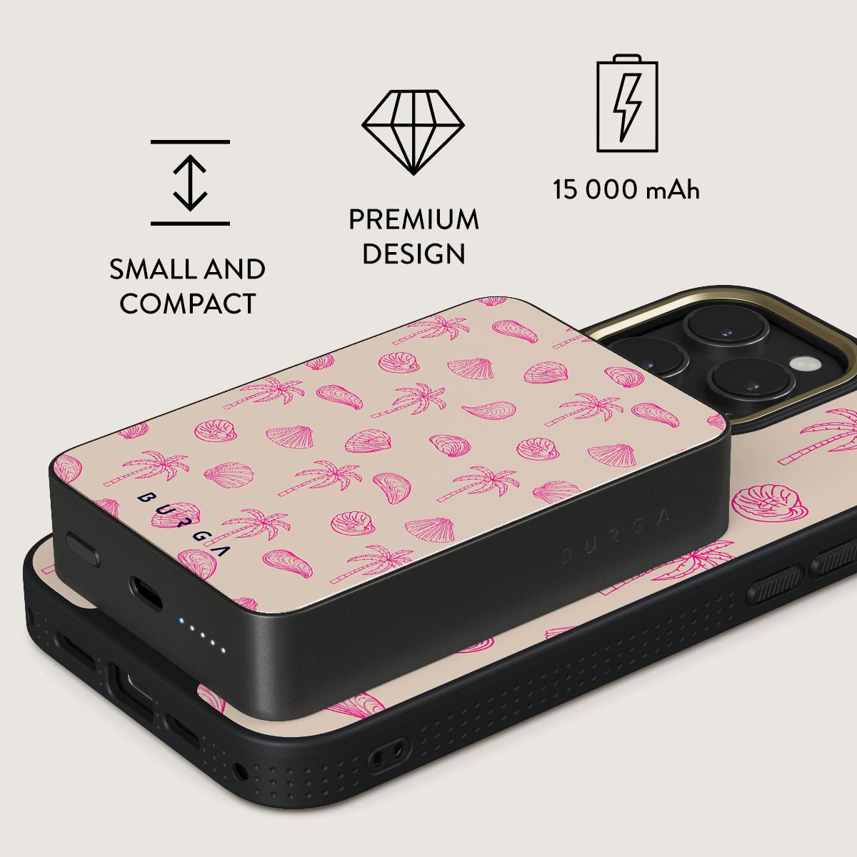 Small but mighty. Stylish but practical. Meet the new and improved BURGA Magnetic Power Bank – your pocket-sized savior with a 5.000 / 10.000 / 15.000 mAh punch. It’s where sleek design meets BURGA’s signature style. made to keep you charged and turning heads wherever you go.