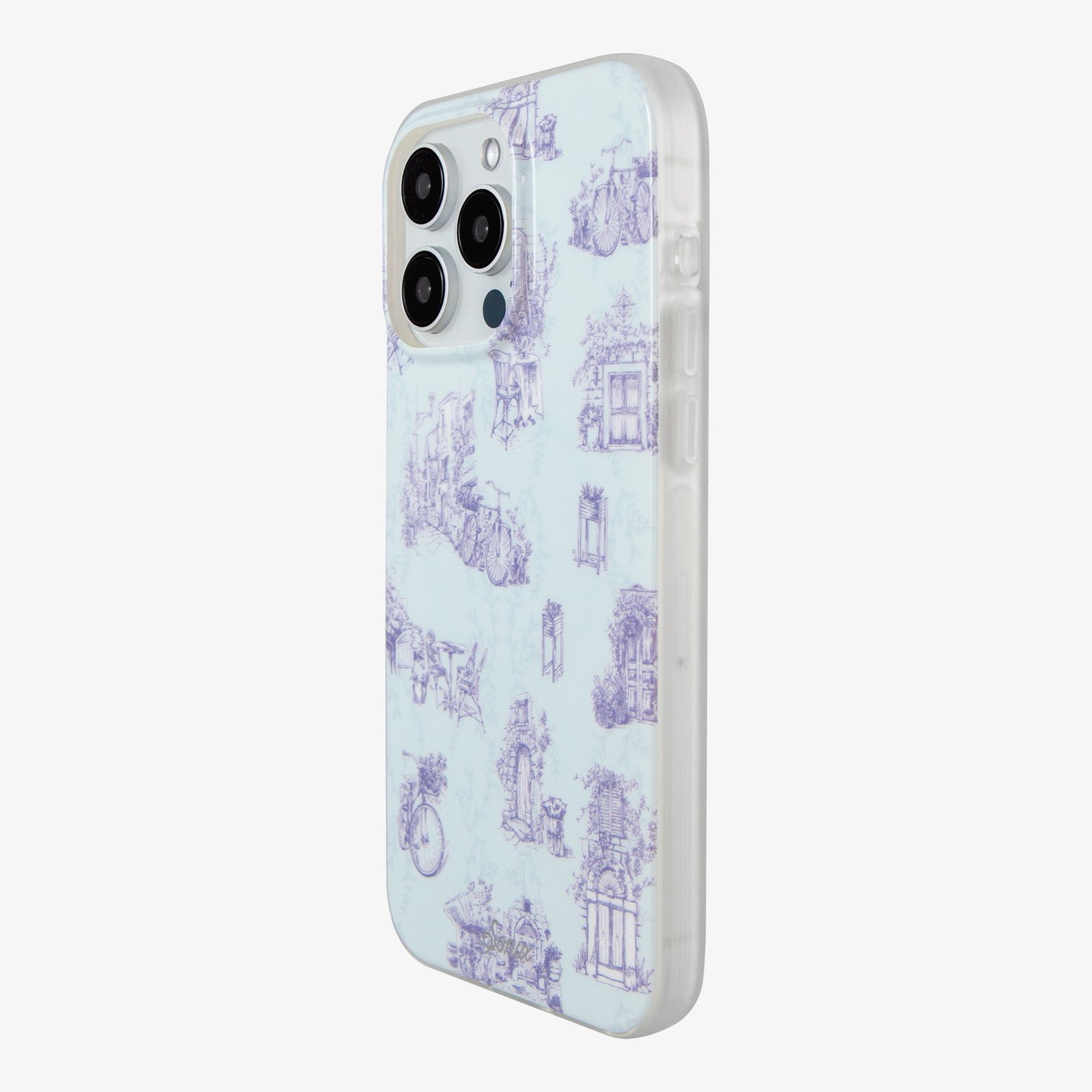 One of our favorite motifs of the moment. we just had to incorporate the timeless and traditional look of toile in our new series of iPhone cases. Moody blue tones and romantic images take this print to the next level. Our Bleu Toile MagSafe® compatible iPhone case is like a trip to the French countryside. with all the romance and antique appeal of a bygone era. Gorgeous scenes of French country life printed over a dreamy. cool blue jelly background provide a touch of romance. a pinch of coquette cuteness. and all the feels on this classic toile printed phone case.