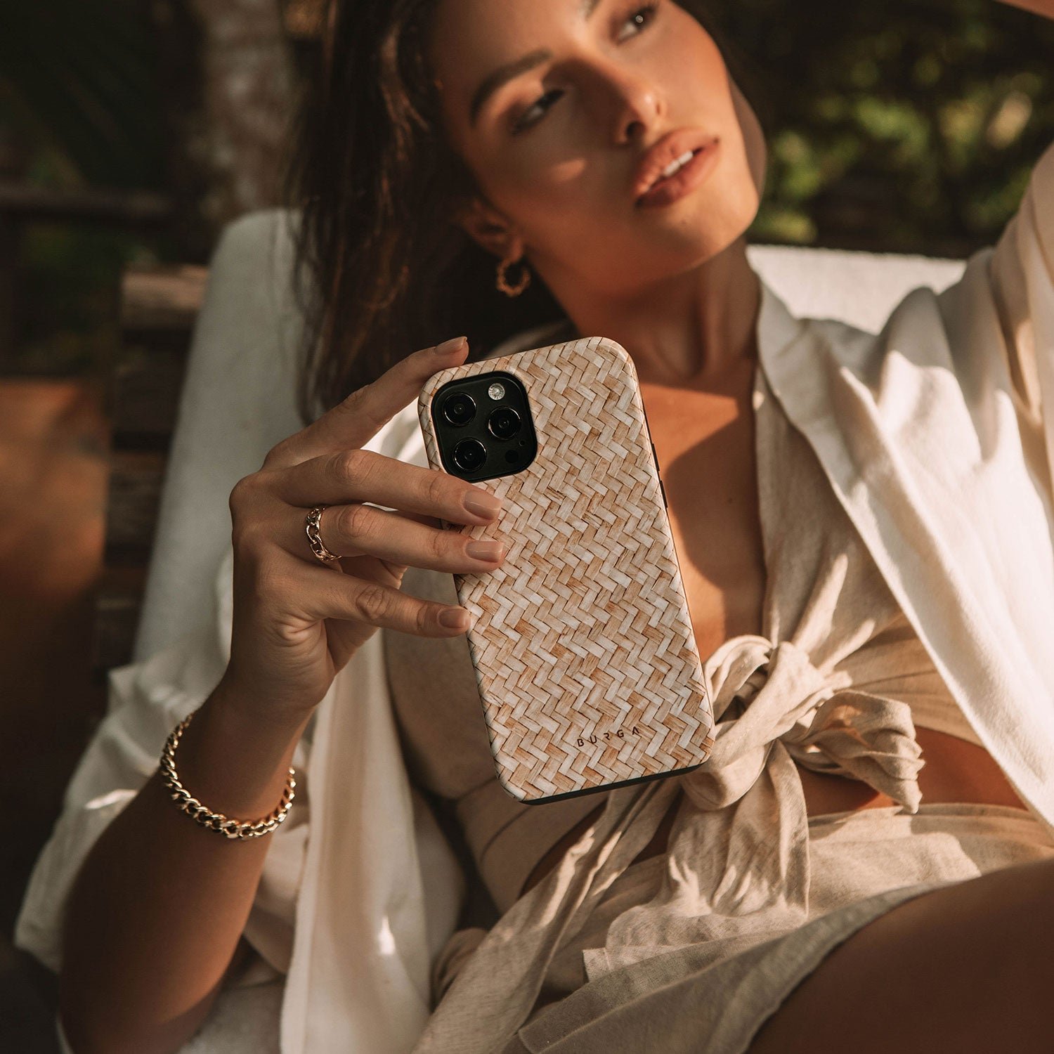 Inspired by a traditional Lauhala Matting. our Boho Dreams OnePlus 8 phone case will surely remind you of a tropical vacation. Carry this feeling of relaxation with this Boho chic case that will also protect your phone.