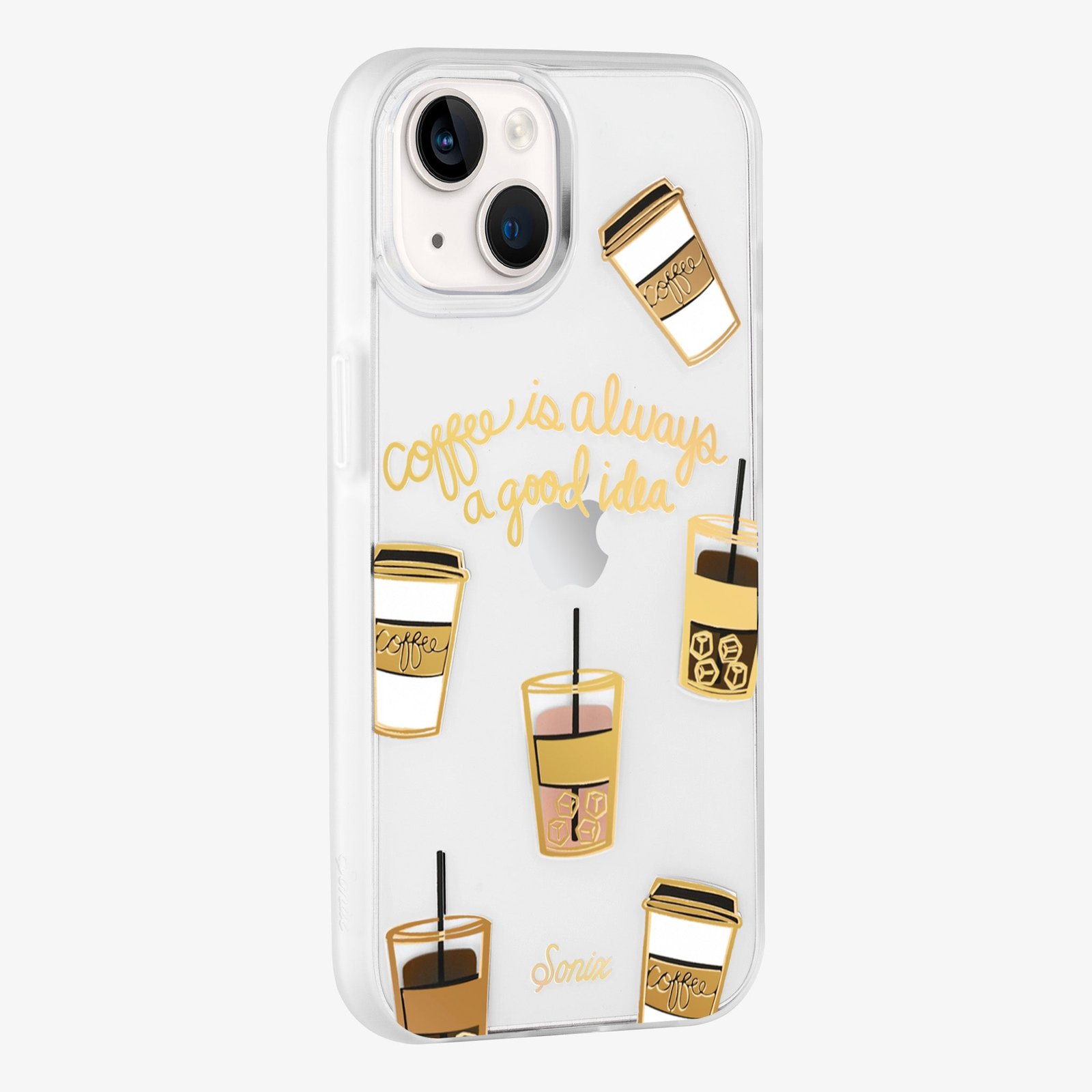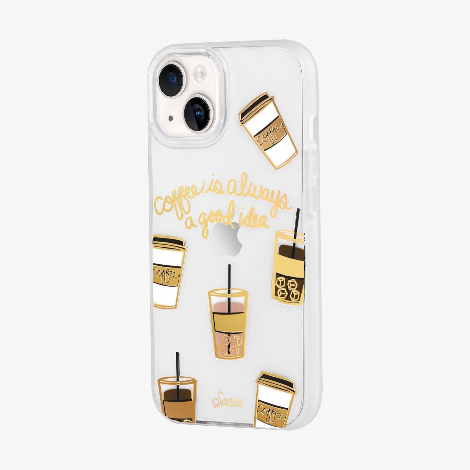Coffee. iPhone Case was made for all of our coffee addicts. Whether you’re an iced latte no matter the weather bestie or hot coffee all the way person. this cute and protective case has your tech covered. literally! This clear coat case is complete with classic Sonix gold foilng.