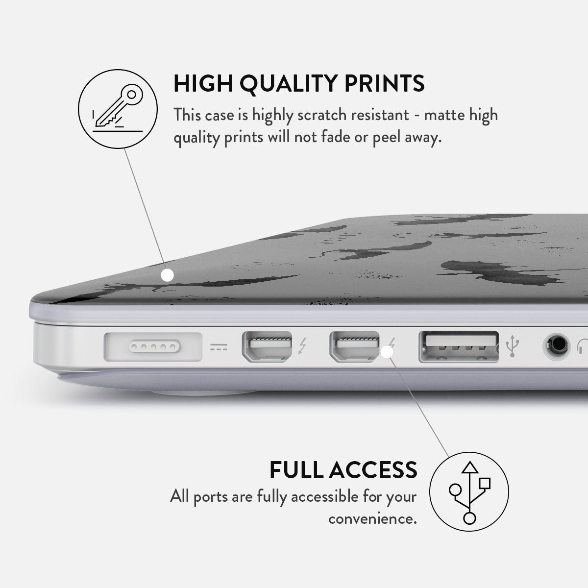 Either way. the BURGA MacBook case is the essential accessory for your everyday portable work-horse. It comes with two separate covers for the top and bottom of your laptop for that 360 protection. Despite this fact. it still maintains a slim profile and doesn’t make your MacBook feel bulky. The bottom cover also has a vent to keep your laptop from overheating when sitting. for example… well… on your lap! What else could you want from a MacBook cover? That’s right – easily accessible ports. Got that covered (or rather. NOT covered) as well.