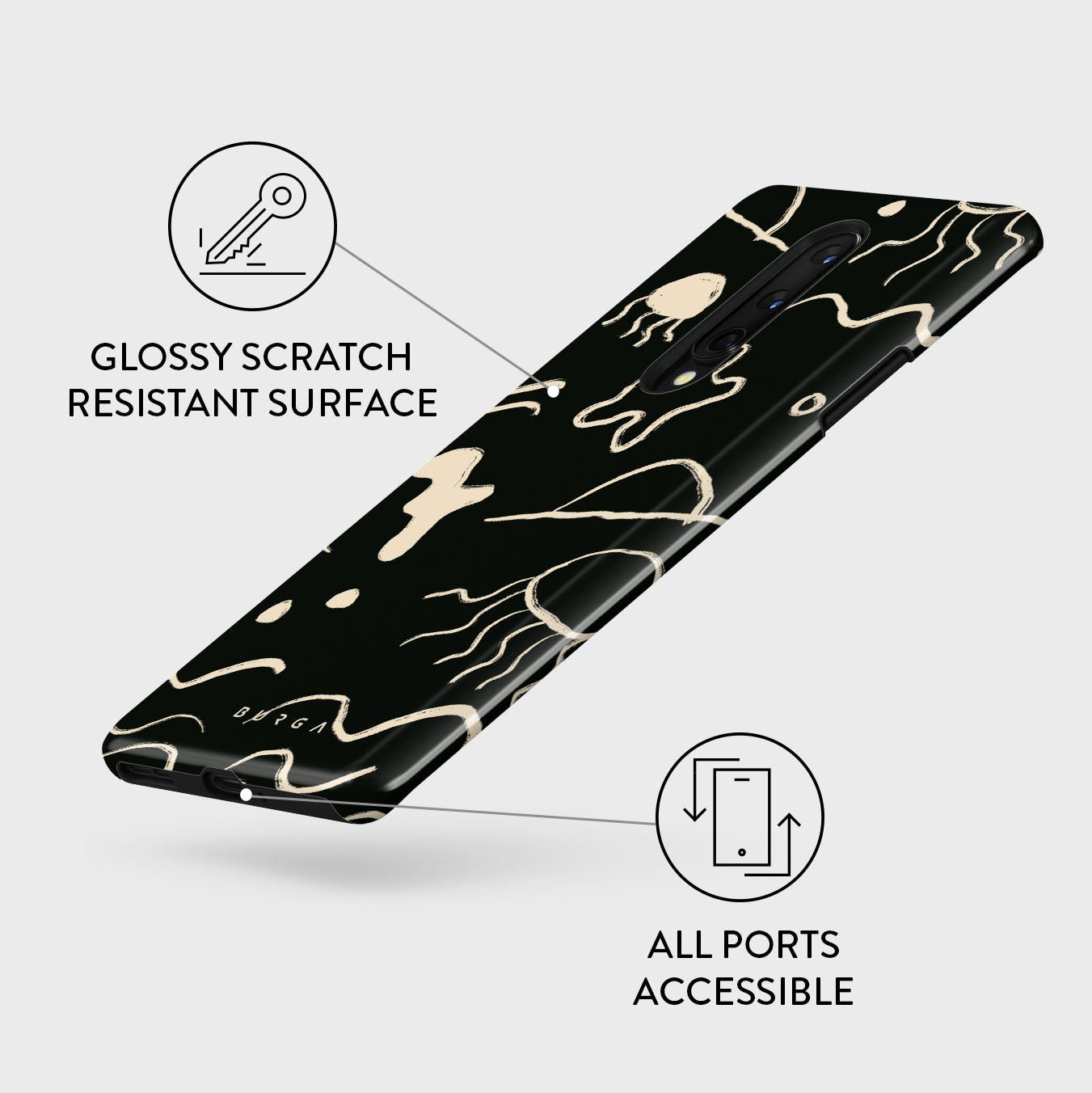 Our Eclipse OnePlus 8 design reflects the enigmatic beauty of the ocean during a solar eclipse. The dark hues and bright accents represent how the light dances on the water. while the waves and jellyfish capture the serene yet dynamic nature of the ocean.