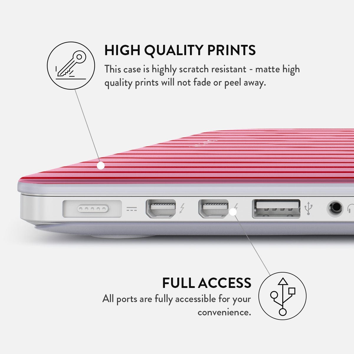 Either way. the BURGA MacBook case is the essential accessory for your everyday portable work-horse. It comes with two separate covers for the top and bottom of your laptop for that 360 protection. Despite this fact. it still maintains a slim profile and doesn’t make your MacBook feel bulky. The bottom cover also has a vent to keep your laptop from overheating when sitting. for example… well… on your lap! What else could you want from a MacBook cover? That’s right – easily accessible ports. Got that covered (or rather. NOT covered) as well.