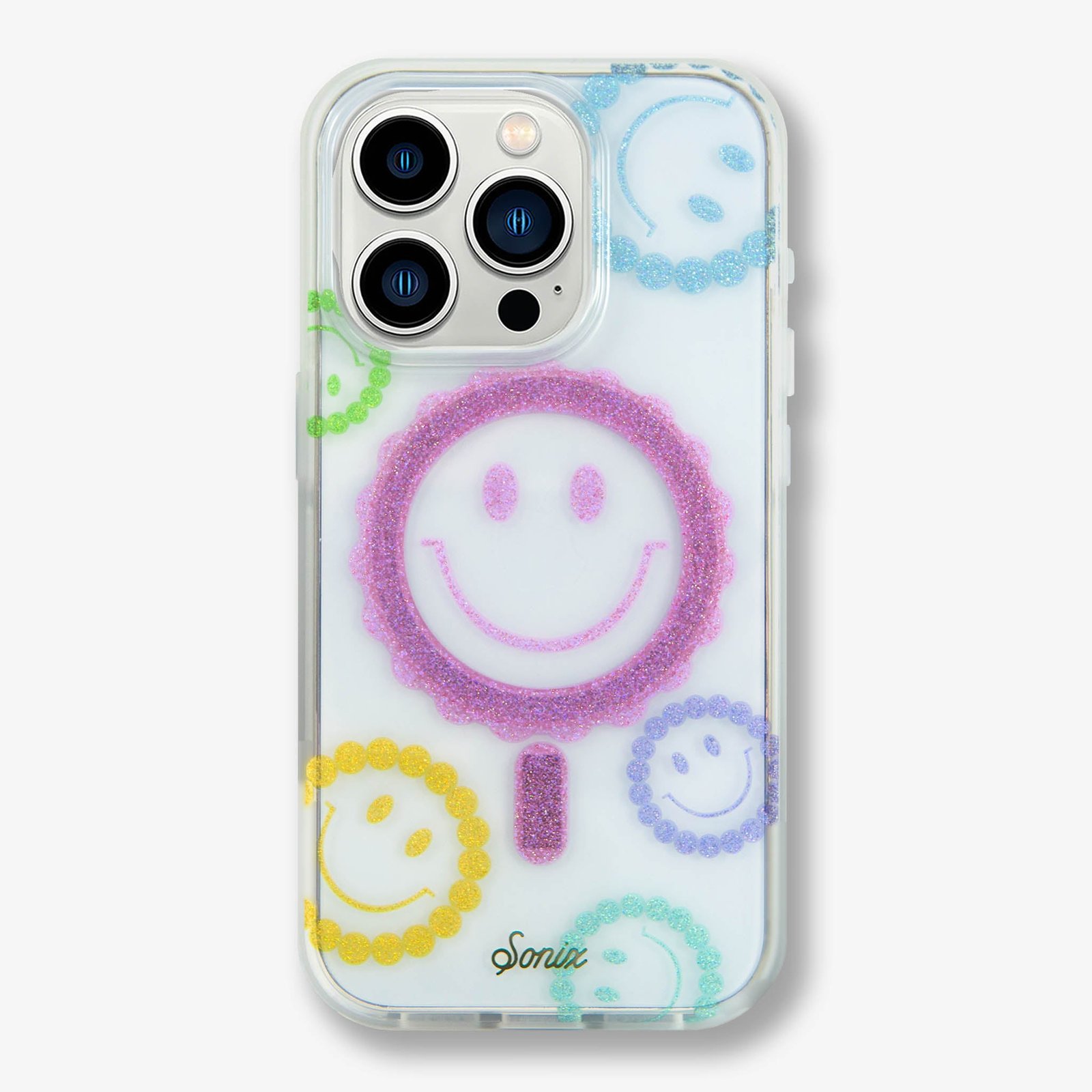 Whether you need a little bit of glitter to brighten your day or you need a little bit of glitter to add to the mix of your celebration. the Glitter Smiley MagSafe® Compatible iPhone Case has got you covered.
