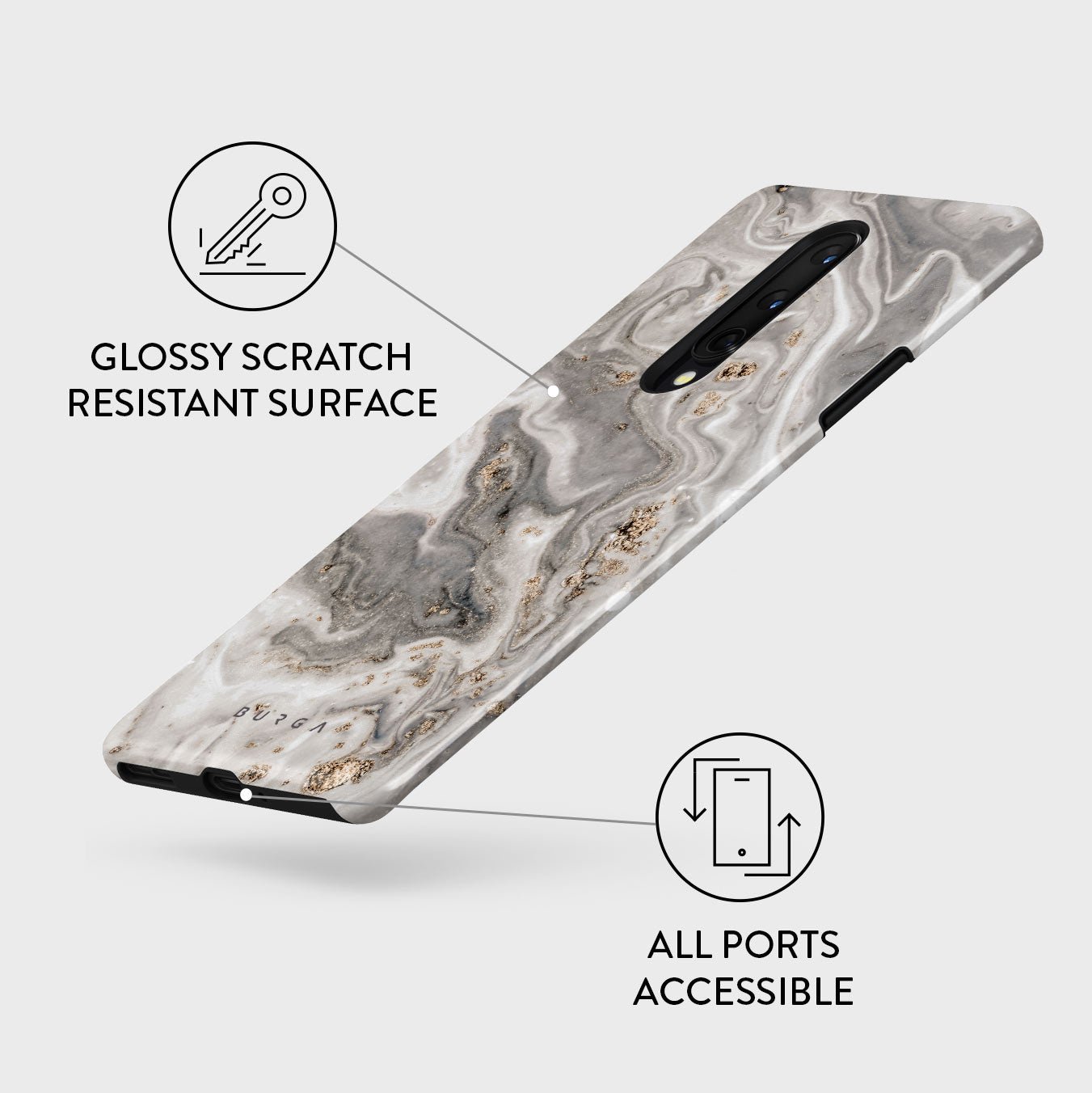 The wind outside is playing his songs. Some fear. some love. and some simply enjoy. But do not be afraid. with our grey marble OnePlus 8 phone case inspired by a beautiful snowstorm. you can have the pretty part of it without any coldness. And as the case offers heavy-duty protection. your phone will also be safe and sound!