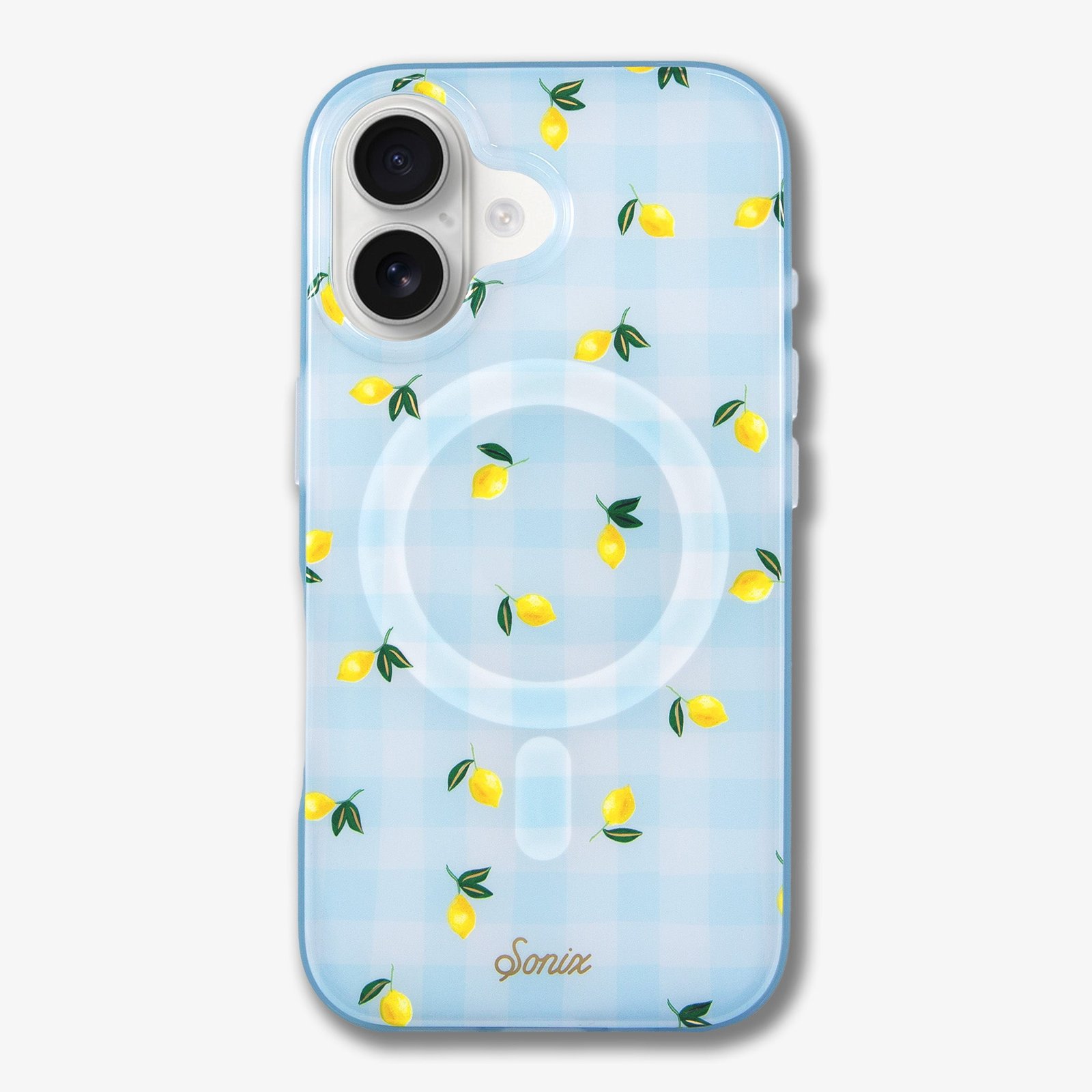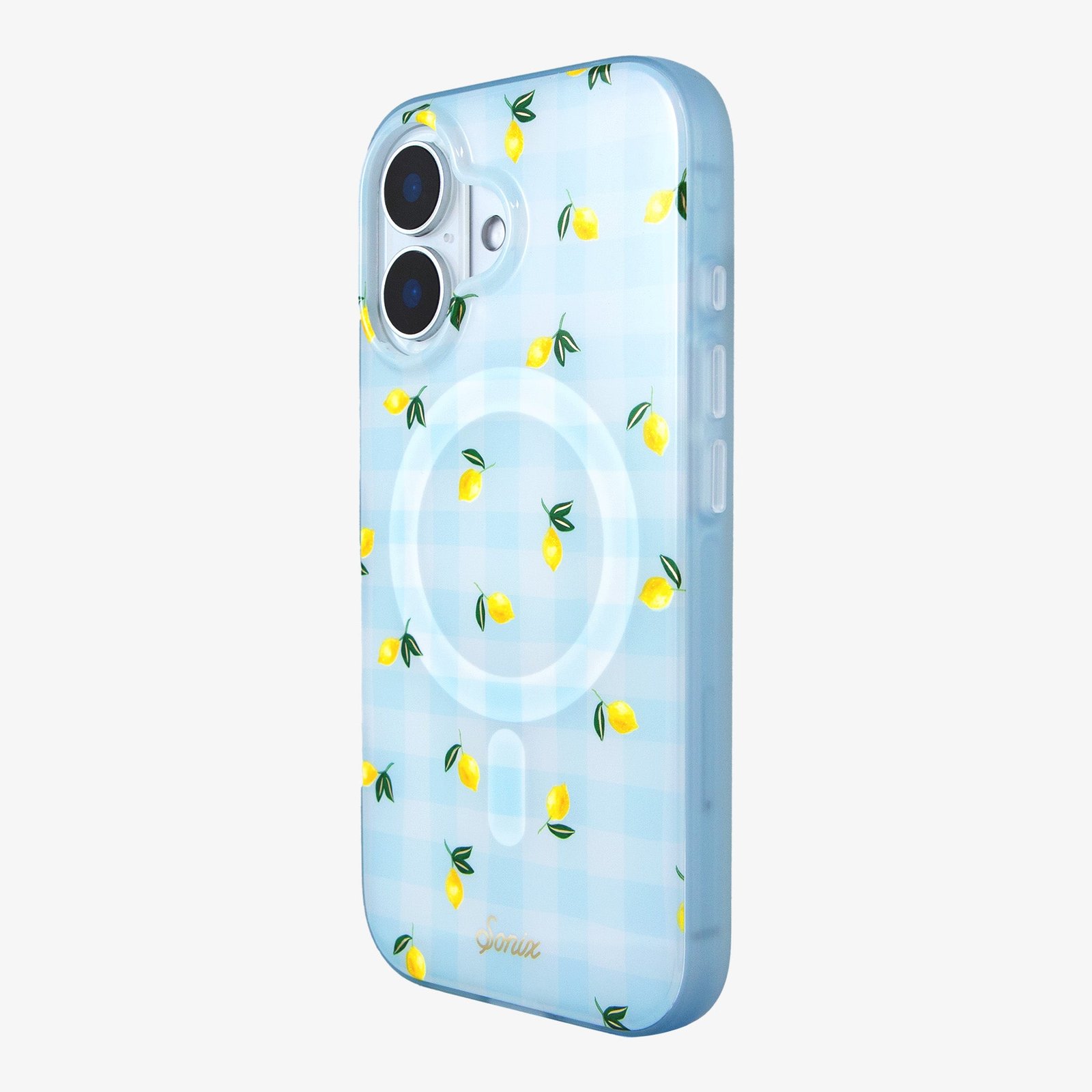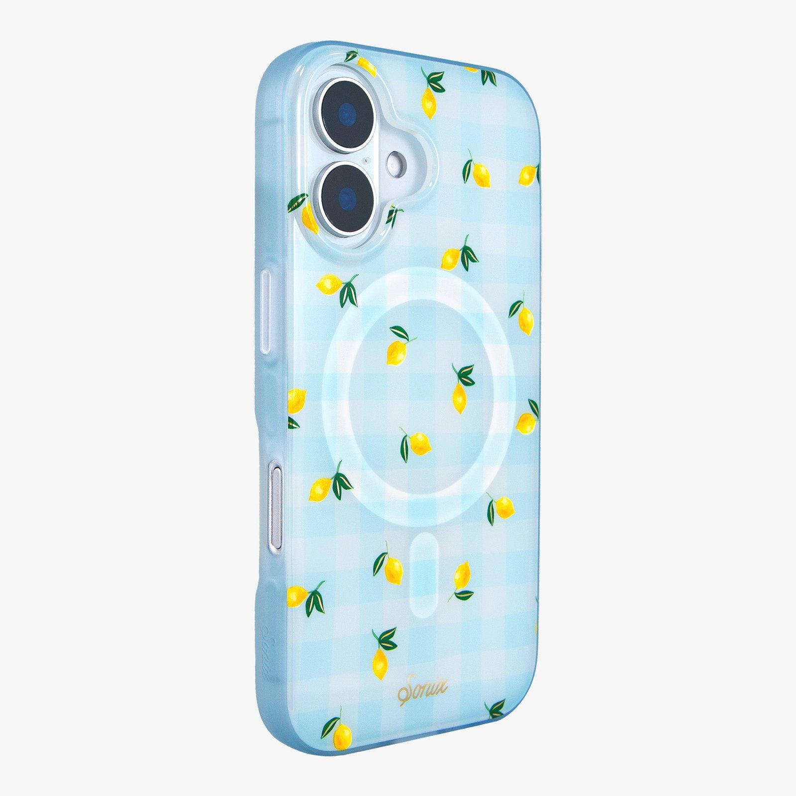 When life gives you lemons. let them inspire you to update your phone case for Spring! Warm weather. sunny skies. and ripe yellow lemons inspired the Lemon Gingham MagSafe® compatible iPhone case. Juicy lemons splashed over a light blue gingham background bring to mind a sunkissed picnic where lemonade is served. This pretty and protective iPhone case is as light and airy as a Spring day and is sure to brighten up your daily carry with a lemon zest for life!