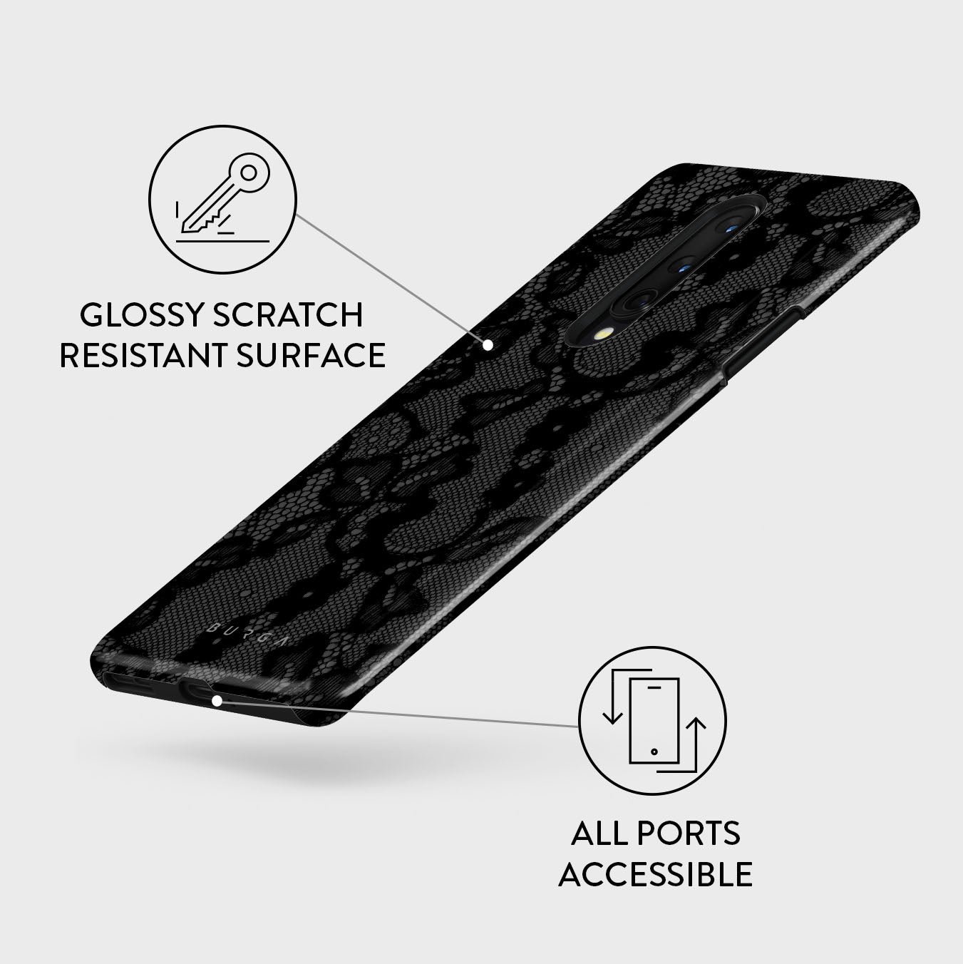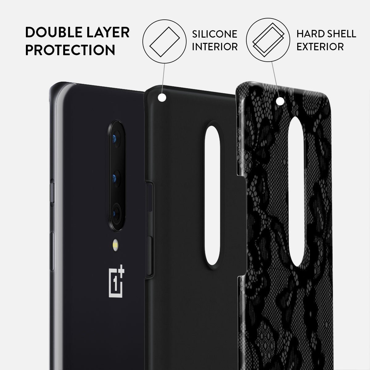 Inspired by the intricate patterns of lace gowns. our Magnetic design is perfect for those with a love for the drama and romance of old Hollywood. This OnePlus 8 phone case is a statement of effortless. mysterious femininity. turning you into the main character where you go.