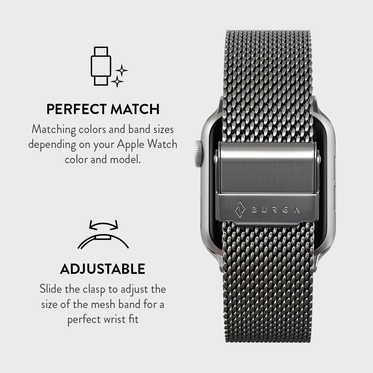 Designed for all Apple Watch models. this band is equipped with a secure double-locking clasp. ensuring a firm hold.