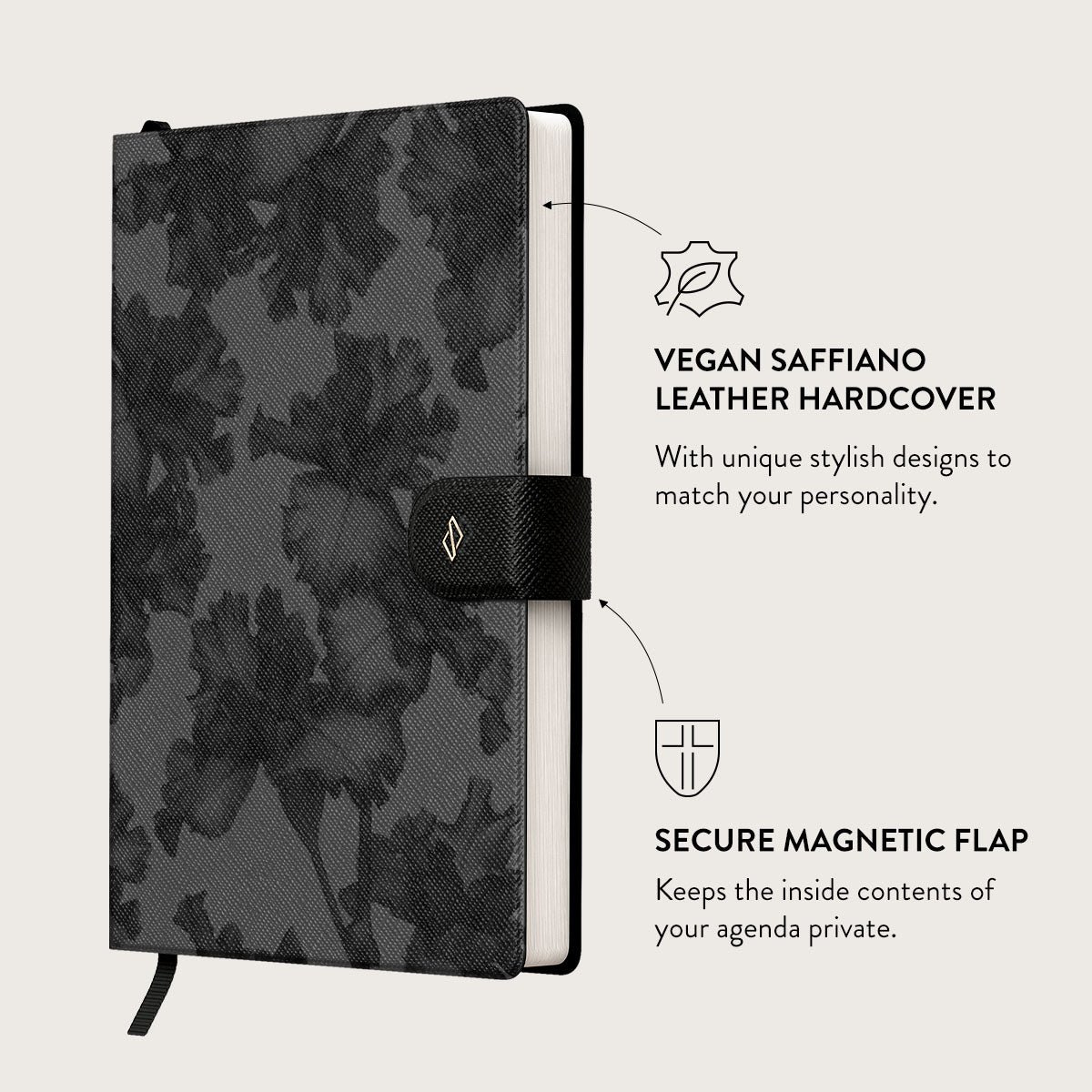 - Vegan faux leather front hardcover with unique stylish designs.