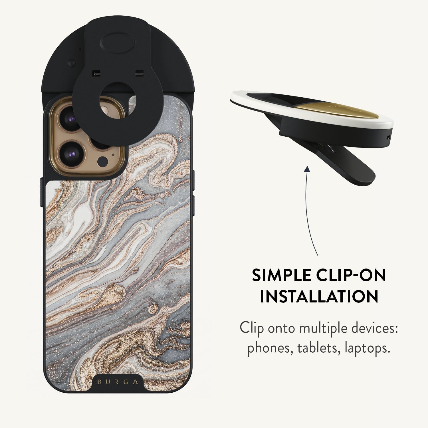 Step into the spotlight—literally! The BURGA Clip-on Ring Light brings studio-level illumination wherever you go. whenever. and without the wires. Just snap it on your phone. tablet. or laptop and let it shine.