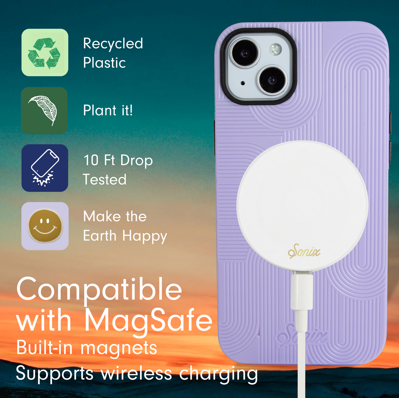 We’re giving waste a second life – say hello to the ReSonix MagSafe® Compatible iPhone Case. Made of recycled plastics. we’re doing our part in moving towards a more sustainable world. Both layers of this case are made completely from recycled materials and provide all around shock absorption. By using recycled materials in this new case. we are reducing the amount of waste that ends up in landfills. oceans. and everywhere plastic isn’t meant to be (we see you microplastics)!