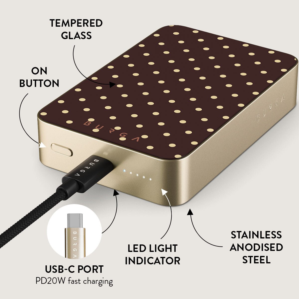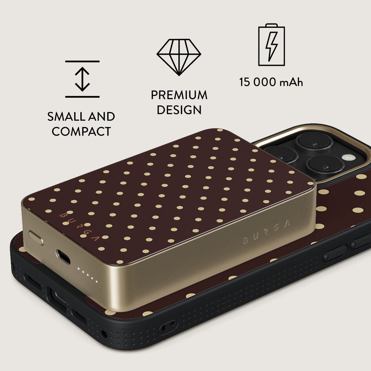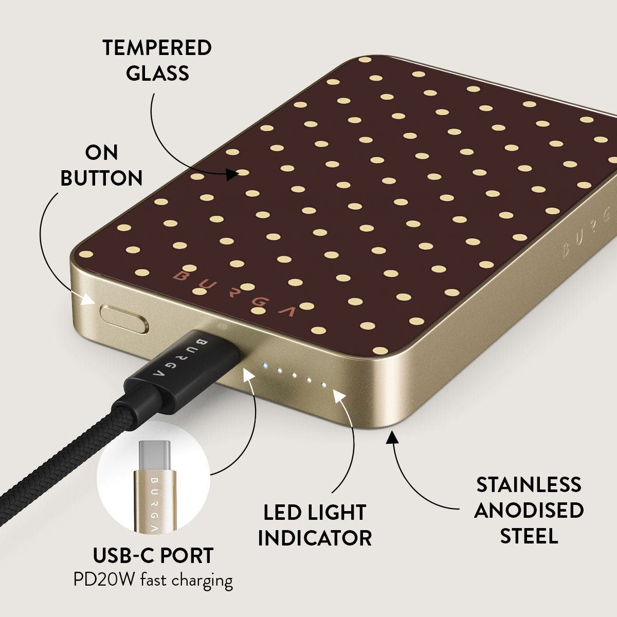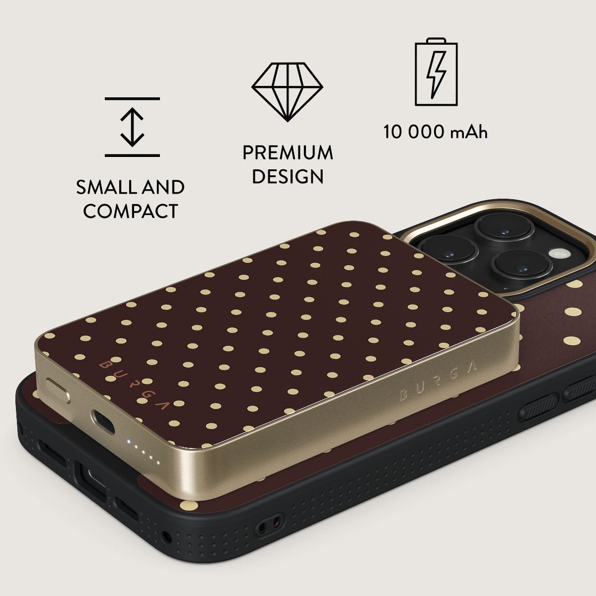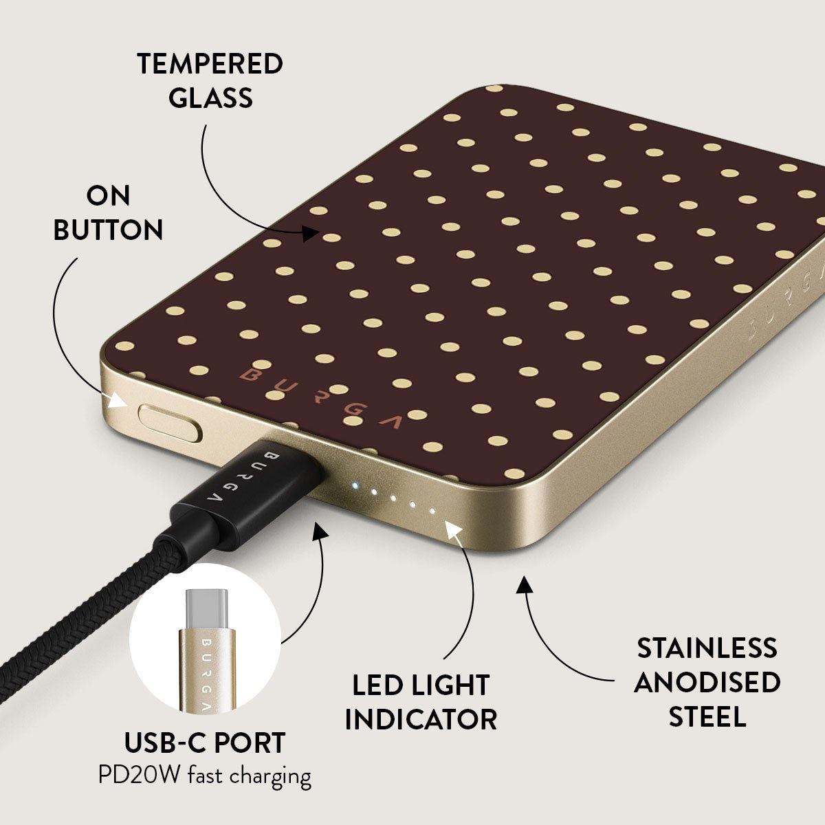 Small but mighty. Stylish but practical. Meet the new and improved BURGA Magnetic Power Bank – your pocket-sized savior with a 5.000 / 10.000 / 15.000 mAh punch. It’s where sleek design meets BURGA’s signature style. made to keep you charged and turning heads wherever you go.