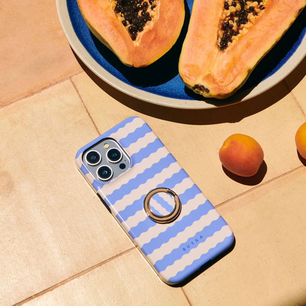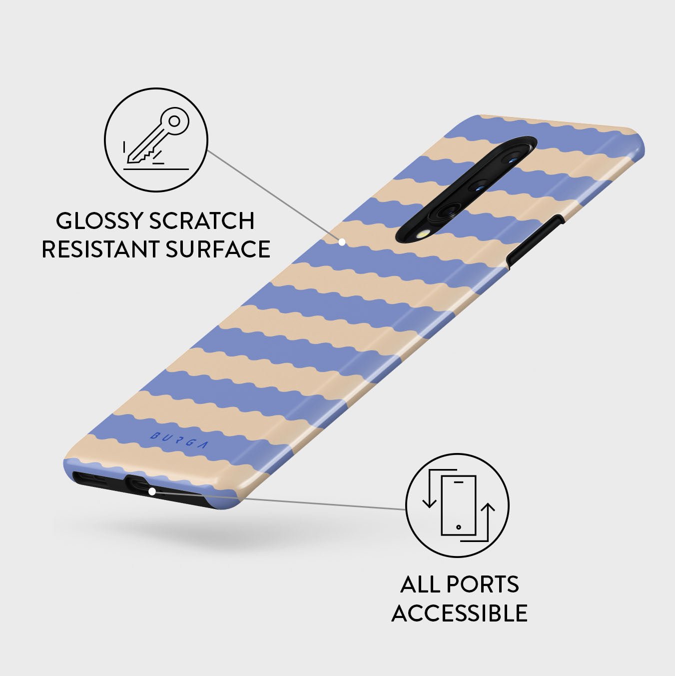 Dive into the cool. refreshing style of our Splash design–a dynamic OnePlus 8 phone case featuring playful. wavy stripes of serene ocean blue and soft sandy beige. Perfect for those who love to make a splash with their accessories.