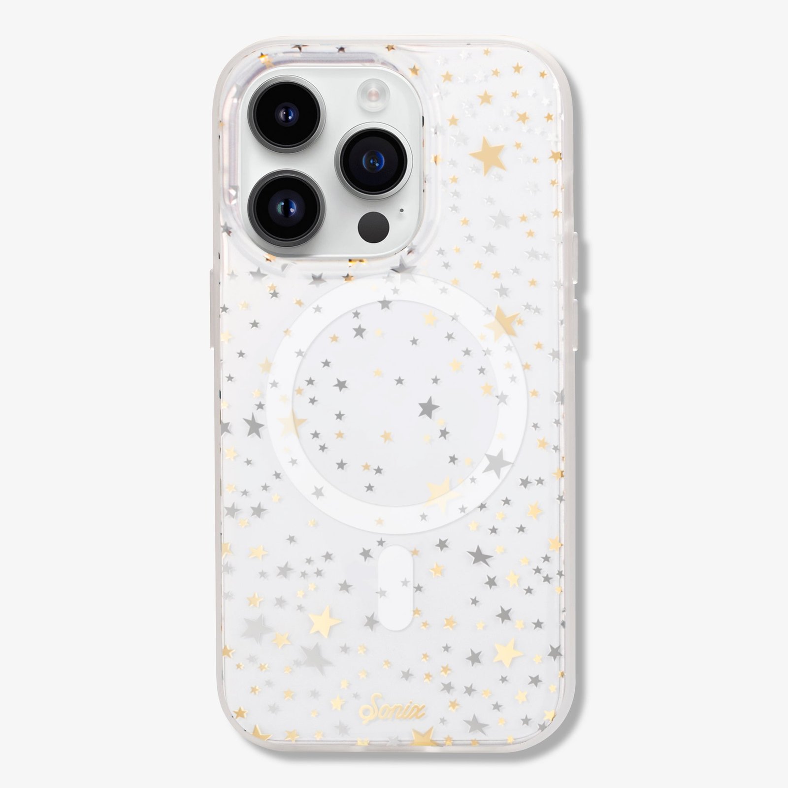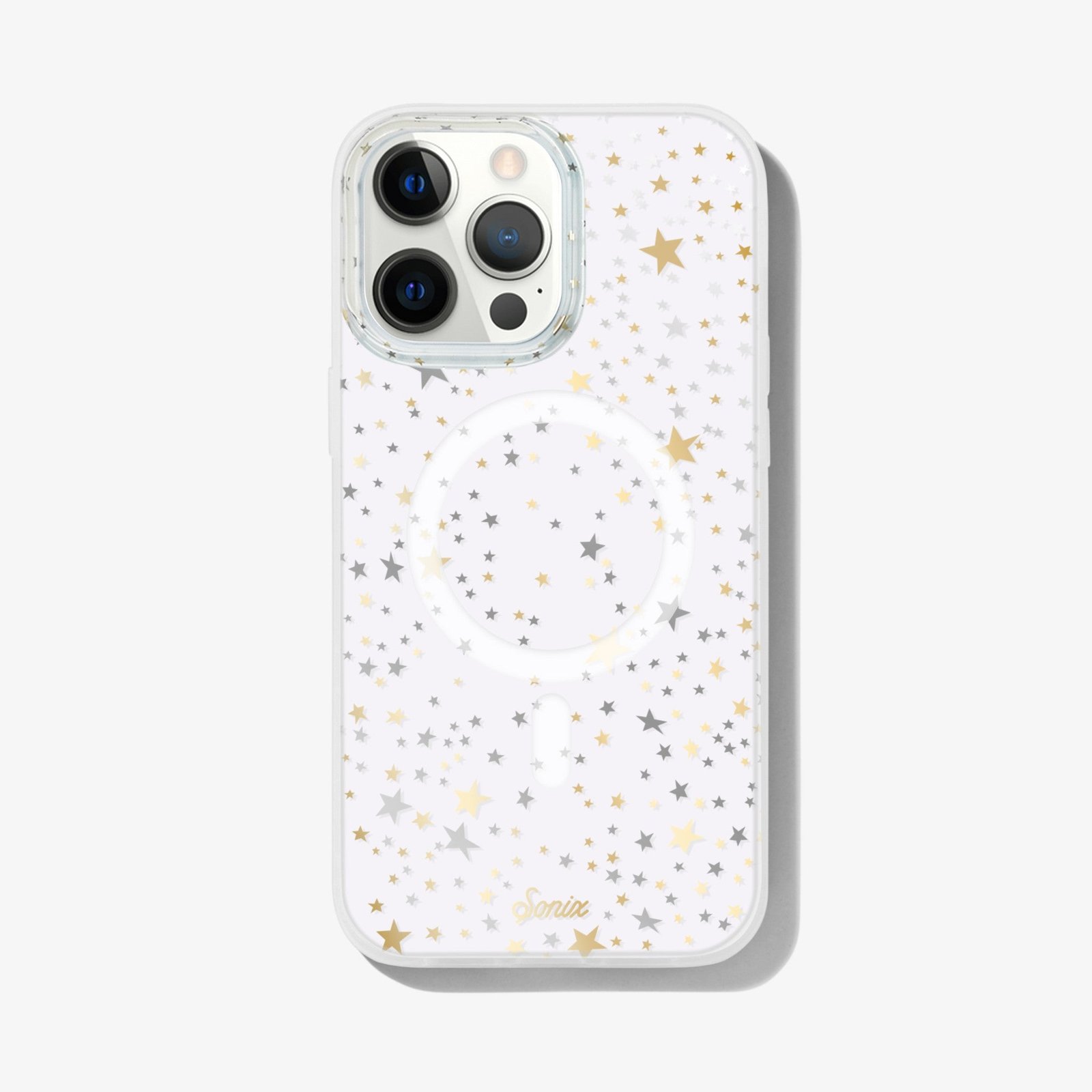 Starry Night. MagSafe® Compatible iPhone Case is a clear coat case with gold and silver stars. made for all those star lovers.