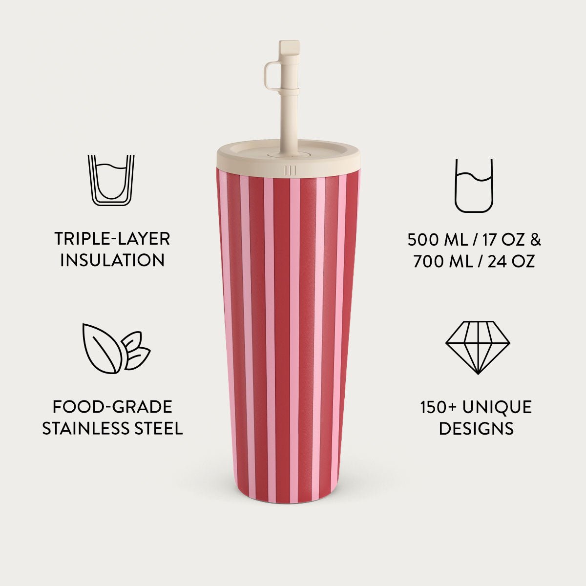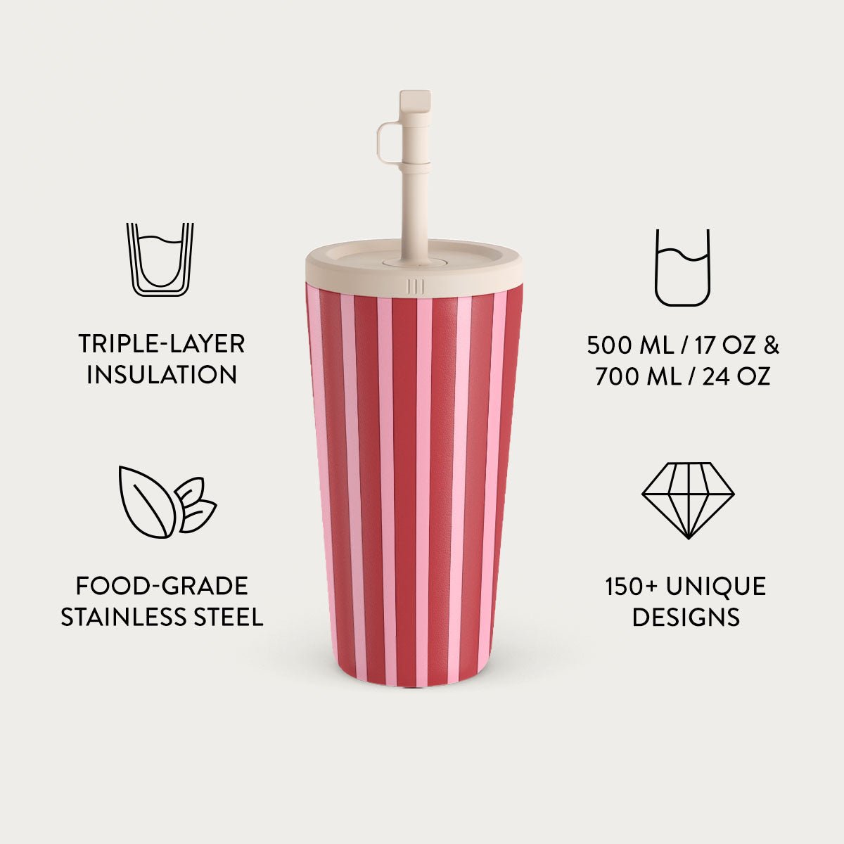 Choose from over 150 unique BURGA designs. each paired with one of six vibrant flap or straw lid colors. Our team matches the lid to the design for a seamless and stylish look.