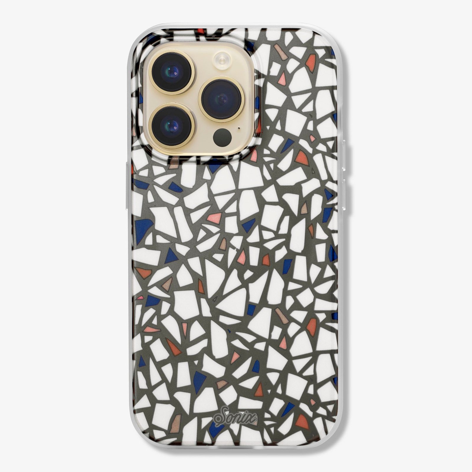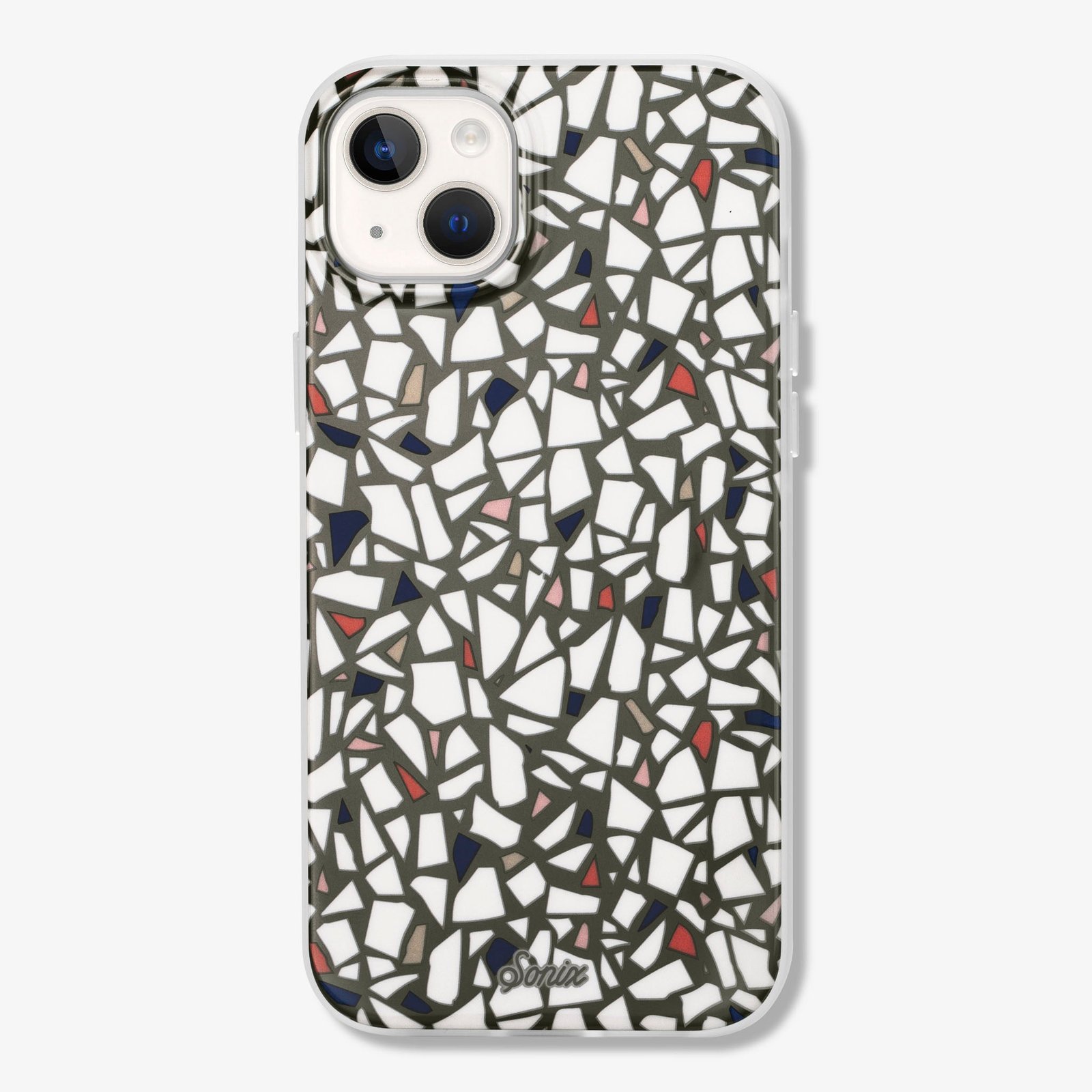 This classic terrazzo print features white. pink and metallic specks. Neutral in color. extraordinary in style.