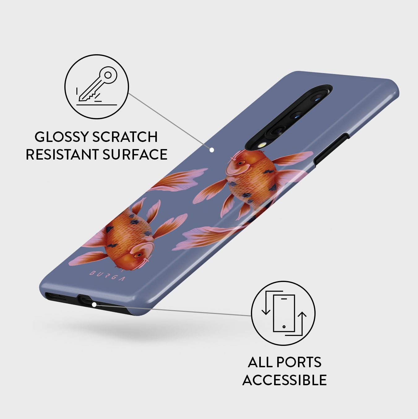 In the embrace of serene blue. the golden koi swirl. a symbol of life’s fluid nature and the grace of going with the flow. Their dance is a serene meditation on the currents of destiny and the elegance of adapting with purpose. Discover our Zen OnePlus 8 phone case design.